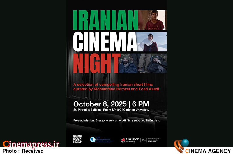 به گزارش سینماپرس، نمایش منتخبی از فیلمهای کوتاه سینمای ایران، روز چهارشنبه ۱۶ مهر برابر با ۸ اکتبر ساعت ۱۸ در دانشگاه کارلتون (Carleton University) شهر اتاوا برگزار خواهد شد.