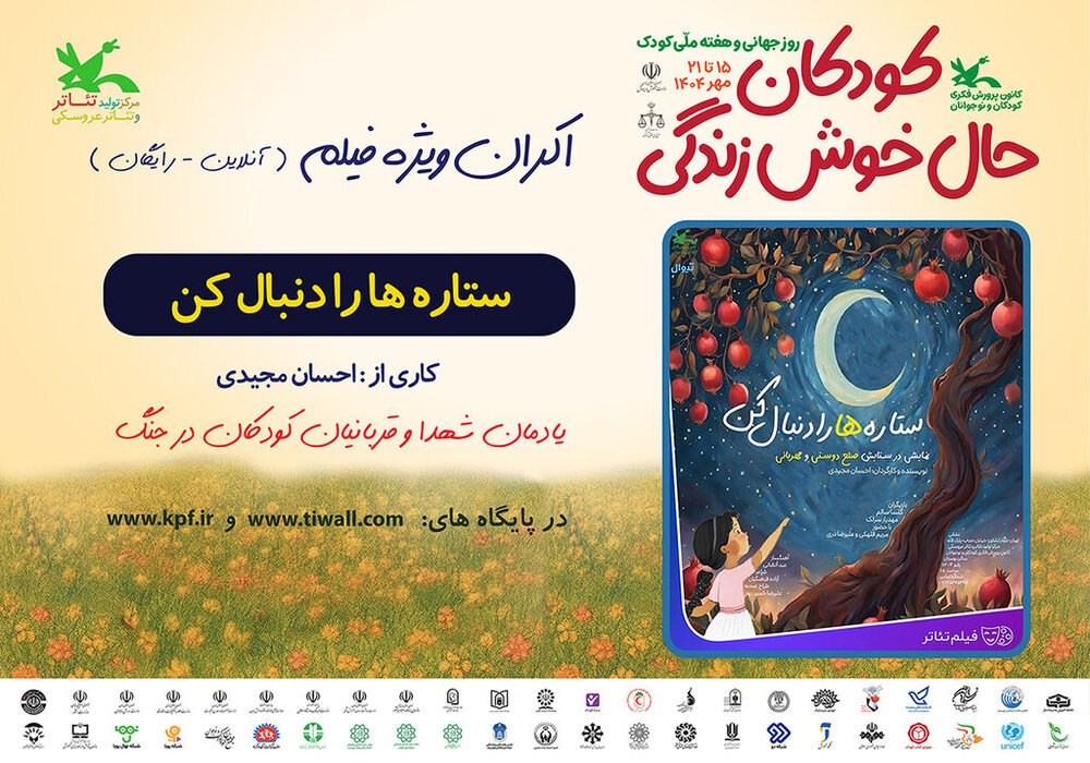فیلم‌تئاتر «ستاره‌ها را دنبال کن» که در زمانه جنگ و جنگ‌افروزی به ستایش صلح، دوستی و مهربانی می‌پردازد، در هفته ملی کودک از پایگاه اینترنتی تیوال به صورت برخط(آنلاین) و رایگان اکران می‌شود.