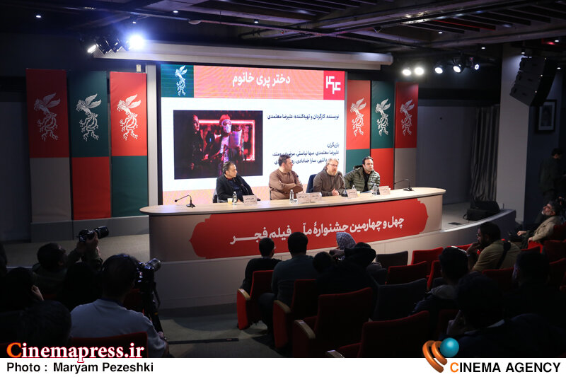 سینماپرس: نشست خبری فیلم سینمایی «دختر پری خانم» در حاشیه نمایش این اثر در سانس دوم از پنجمین روز برگزاری «چهل و چهارمین جشنواره ملی فیلم فجر» در روز چهارشنبه ۱۵ بهمنماه و با حضور عوامل تولید این فیلم سینمایی در محل «پردیس ملت» به عنوان «سینمای رسانه» برگزار شد.